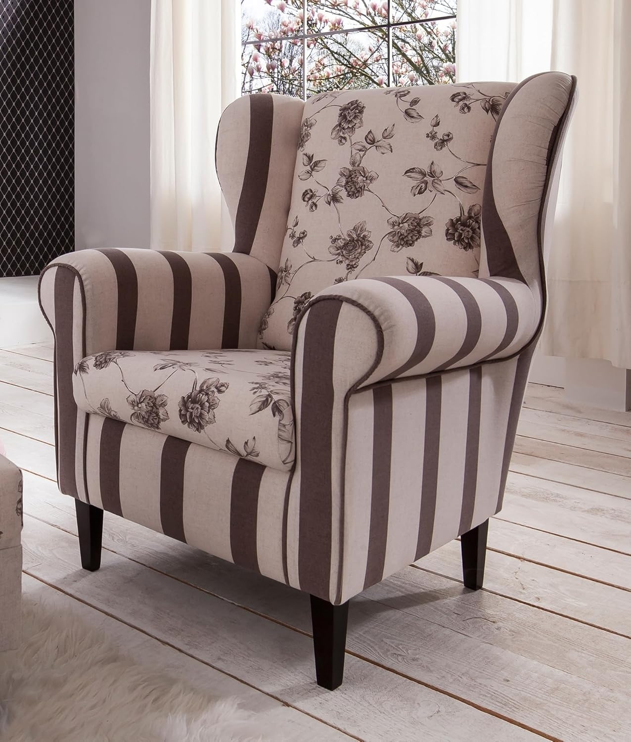 Polstersessel Ohrensessel Aversa mit schönem Landhaus Stoff