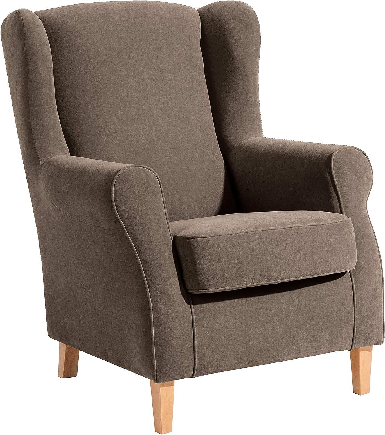 Der Lorris Ohrenbackensessel aus Veloursstoff in der Farbe Sahara vereint klassischen Stil und modernen Komfort. Mit geschwungenen Armlehnen und Kedernähten am Sitz bietet er nicht nur eine große Sitzfläche, sondern auch eine extrahohe Lehne für optimalen Sitzkomfort. Die Füße aus massiver Buche in Natur runden das ansprechende Design ab. Der Sessel wird zerlegt geliefert und ist neu sowie originalverpackt. **Highlights** - Klassischer Stil mit Veloursstoff - Geschwungene Armlehnen - Kedernähte am Sitz - Extrahohe Lehne - Große Sitzfläche **Produkteigenschaften** - Maße: ca. 77 x 103 x 86 cm (B x H x T) - Sitzhöhe: ca. 49 cm - Sitztiefe: ca. 50 cm - Material: Bezug: 100% Polyester / Gestell: Buche Natur - Farbe: Sahara - Gewicht: ca. 25 kg **Lieferumfang** - Ohrenbackensessel (ohne Dekoration und weiter gezeigte Möbel)