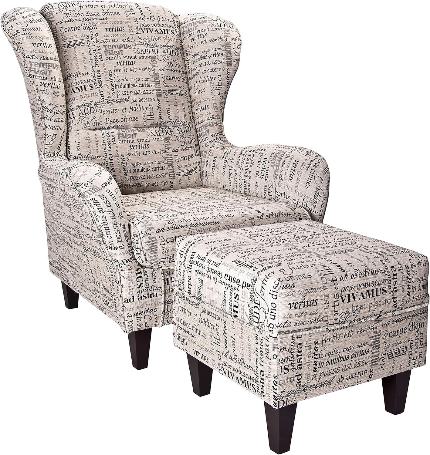 Der Supellex Sofia Ohrensessel mit Hocker im Carpe Diem Design in Beige vereint stilvolles Design und hohen Komfort. Die handgefertigte Polsterung mit Wellenunterfederung sorgt für eine angenehme Sitzfläche, während die hohe Rückenlehne optimalen Halt bietet. Mit einer Belastbarkeit von bis zu 120 kg und einem eleganten, rückseitig bezogenen Design ist dieser Sessel ein echter Blickfang in jedem Raum. **Highlights** - Handgefertigte Polsterung für hohen Komfort - Hohe Rückenlehne zur optimalen Unterstützung - Belastbarkeit von bis zu 120 kg für Robustheit - Rückseitig bezogenes Design für freie Platzierung im Raum - Füße aus massivem, transparent lackiertem Buchenholz **Produkteigenschaften** - Bezugsmaterial: 50% Baumwolle, 50% Polyester - Maße Ohrensessel: 92 x 92 x 108 cm - Sitzfläche Ohrensessel: 59 x 56 cm - Sitzhöhe Ohrensessel: 45 cm - Gesamtgewicht Ohrensessel: 30 kg - Maße Hocker: 52 x 52 x 45 cm - Gewicht Hocker: 8 kg - Füße mit einer Höhe von 13 cm **Lieferumfang** - Supellex Sofia Ohrensessel - Hocker - Exklusive Dekoration und Zubehör