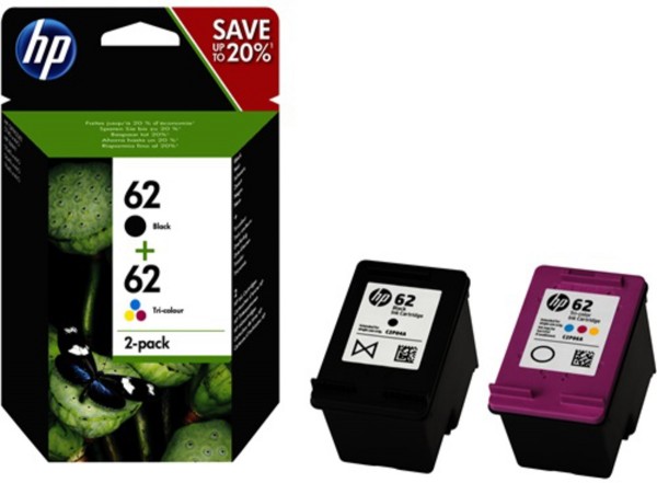 in Originale DruckerpatronenHP N9J71AE 62 Original-Tintenpatronen Schwarz und Tri-Color (Cyan, Magenta, Gelb), 2 Stück