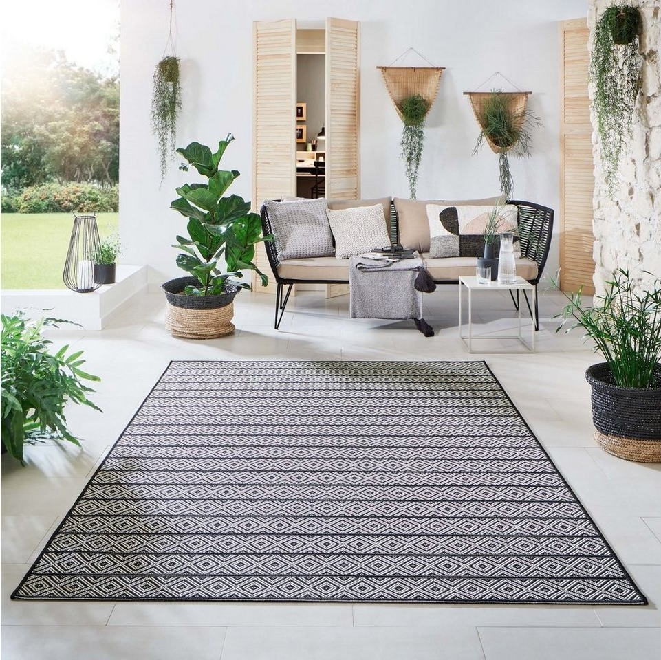 | Name | In- und Outdoor Teppich Öland - Streifen, Farbe: Schwarz Beige, Größe: 80x150 cm |