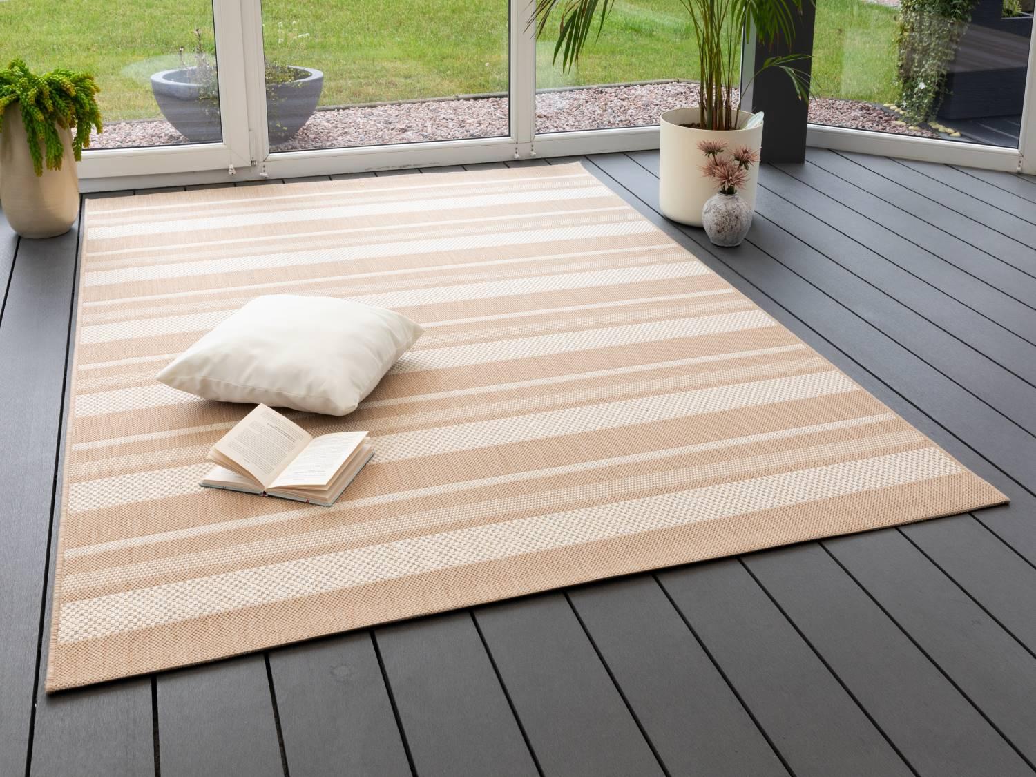 | Name | In- und Outdoor Teppich Bergen Streifen, Farbe: Streifen Beige, Größe: 160x230 cm |