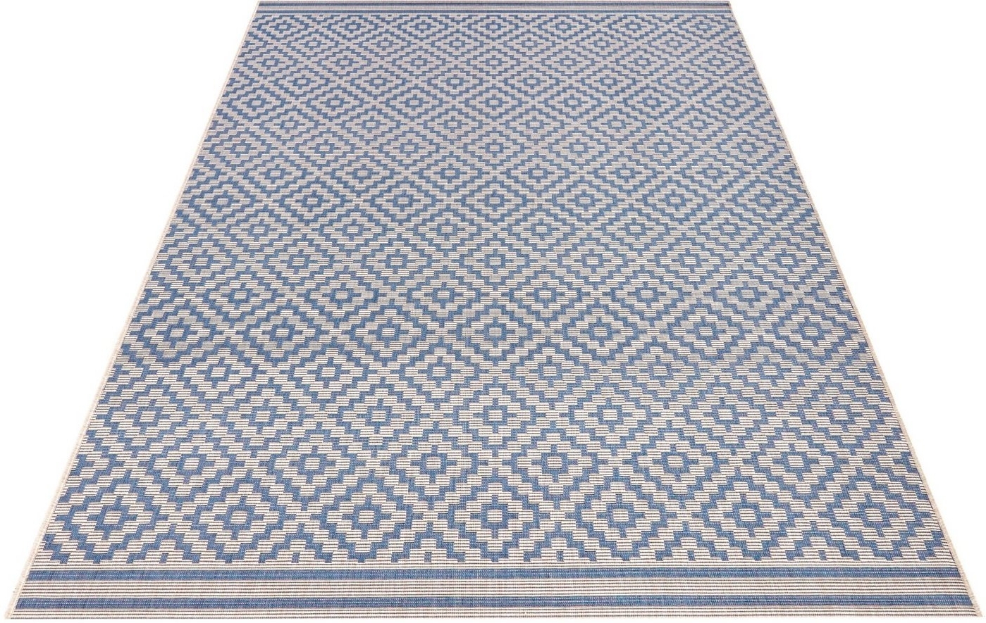 | Name | In- & Outdoor Teppich Raute blau/creme - 80x150x0,8cm |