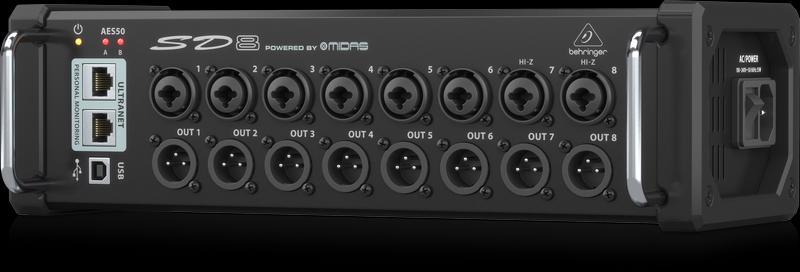 - Die Behringer SD8 Digitale Stagebox verfügt über 8 hochwertige MIDAS Mikrofonvorverstärker