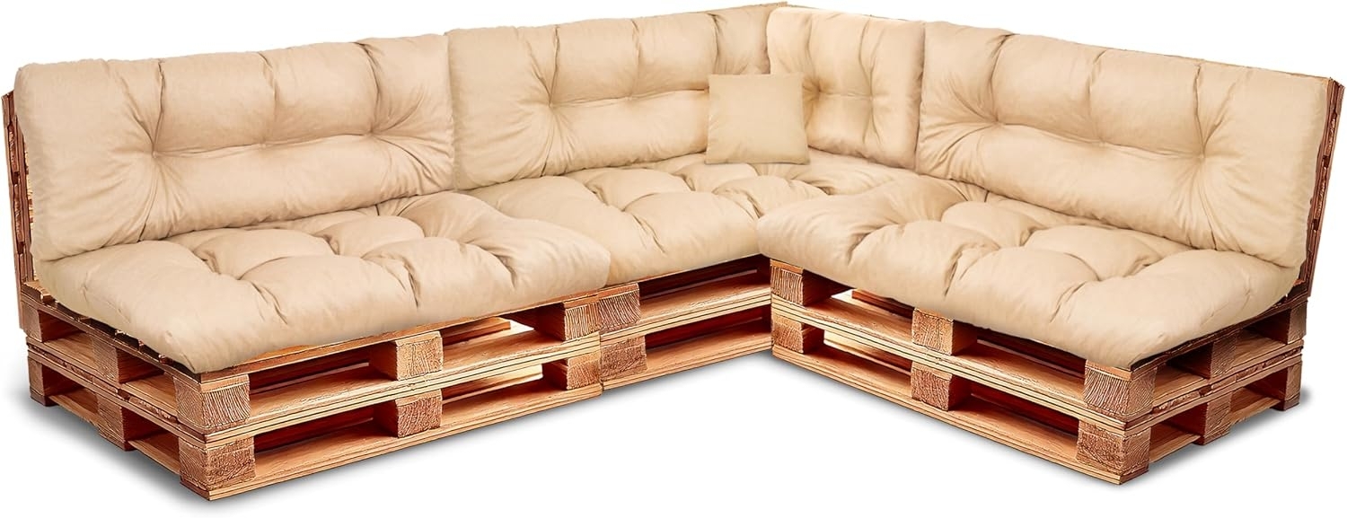 | Name | Palettenkissen Set – Sitzkissen für Europaletten Wasserdicht – Palettenpolster, gefüllt mit granuliertem Poulirette-Schaum – Inkl. 3x Sitzkissen 120x80 +Rückenlehne 120x40 sowie 60x40 & 40x40 |