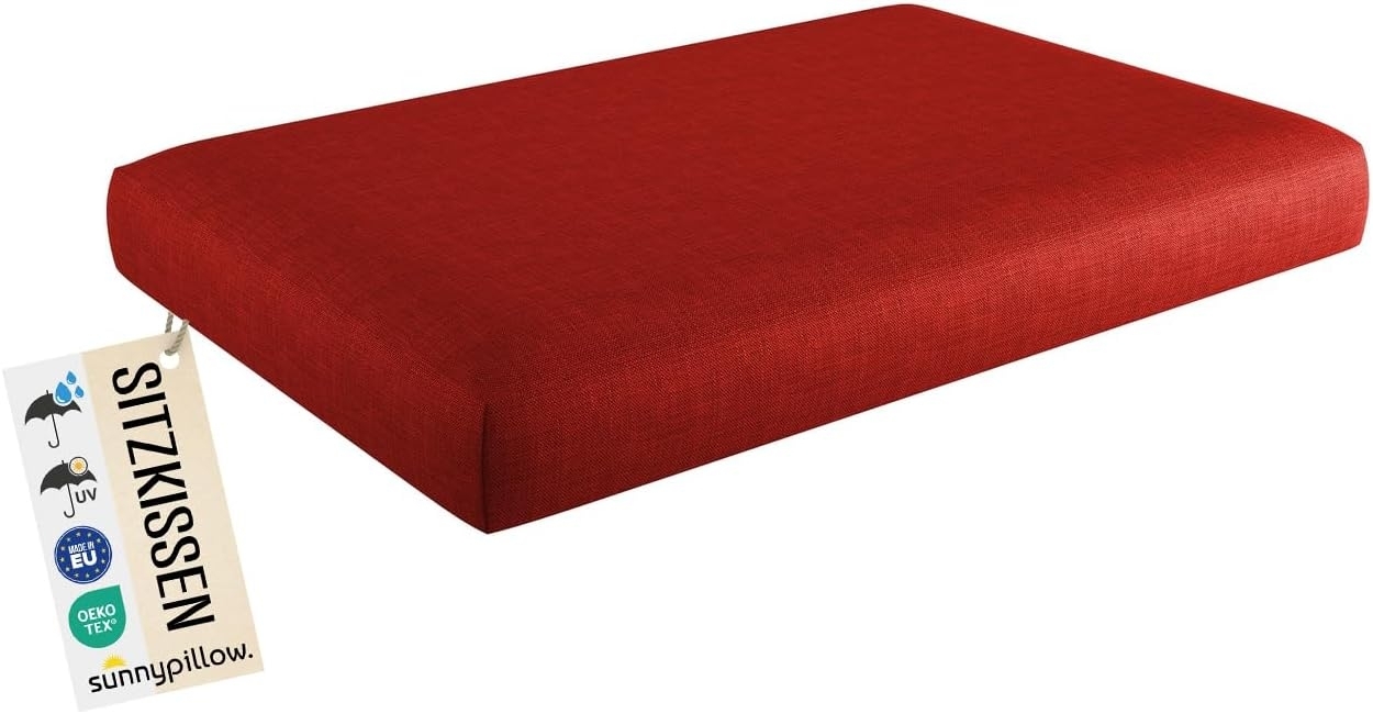 in Palettenkissensunnypillow Palettenkissen mit abnehmbarem Bezug UV - beständig Outdoor wasserdicht Kaltschaum Palettenauflage Palettenpolster Palettensofa Sitzkissen 120 x 60 x 15 cm Rot