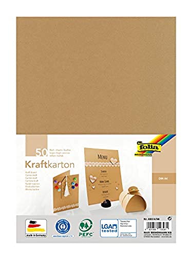folia 692/4/98 - Kraftkarton natur230 g/m², DIN A4, 50 Blatt, zum individuellen Basteln und Gestalten von Grußkarten, Einladungen, Tischkarten, uvm.