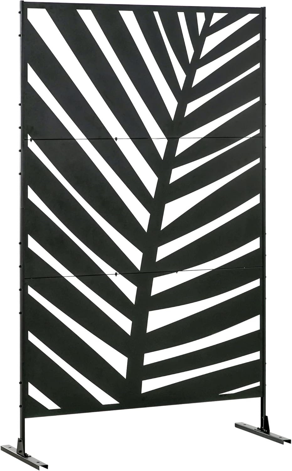 | Name | Outsunny Paravent Raumtrenner mit Bananenblattmuster, Trennwand mit Ständer (Raumteiler, 1 St, Sichtschutz), für Garten, Terrasse, Stahl, Schwarz, 122L x 45B x 198H cm |