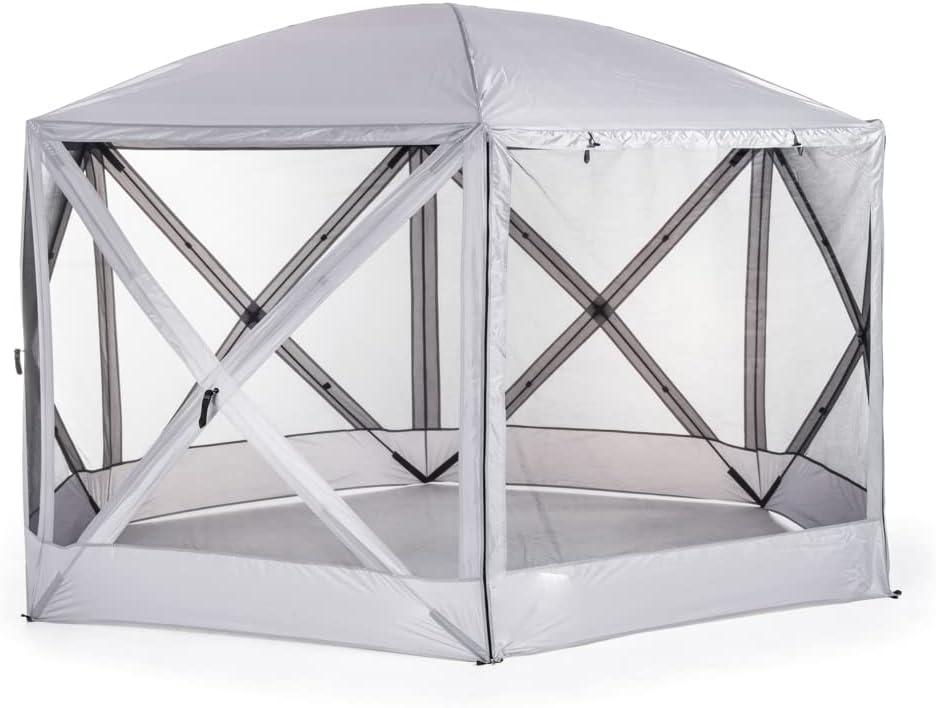 Westmann Polyester Camping Faltpavillon Flexion | Grau | 350 x 300 x 225 cm Der Westmann Camping Pavillon bietet Ihnen an jedem Ort ein schattiges Plätzchen. Hergestellt aus strapazierfähigem 210D Polyester mit UPF-50+-Sonnenschutz und Stangen aus Fiberglas, bietet er optimalen Schutz vor Sonne und Regen. Das Mesh-Gewebe schützt vor Insekten und sorgt für eine optimale Ventilation. Mit einem Gewicht von nur 9 kg und der praktischen Tragetasche ist der Pavillon flexibel im Garten oder bei einem Campingausflug aufstellbar. Der großzügige Innenraum bietet Platz für einen Gartentisch und Campingstühle, sodass Sie ungestört ein Picknick genießen können. Der Pavillon wird mit Erdankern fixiert und ist somit stabil und sicher. **Highlights** - Einfacher Aufbau mit wenigen Handgriffen - Leichter Transport dank geringem Eigengewicht - UPF-50+-Sonnenschutz für optimalen Schutz vor Sonne - Schutz vor Insekten dank Mesh-Gewebe - Optimale Ventilation für ein angenehmes Klima **Produkteigenschaften** - Abmessungen: 350 x 300 x 225 cm (LxBxH) - Material: 210D Polyester - Stangen aus Fiberglas - Gewicht: 9 kg - Inklusive Tragetasche und Erdanker **Lieferumfang** - 1x Westmann Polyester Camping Faltpavillon Flexion - 1x Tragetasche - Erdanker