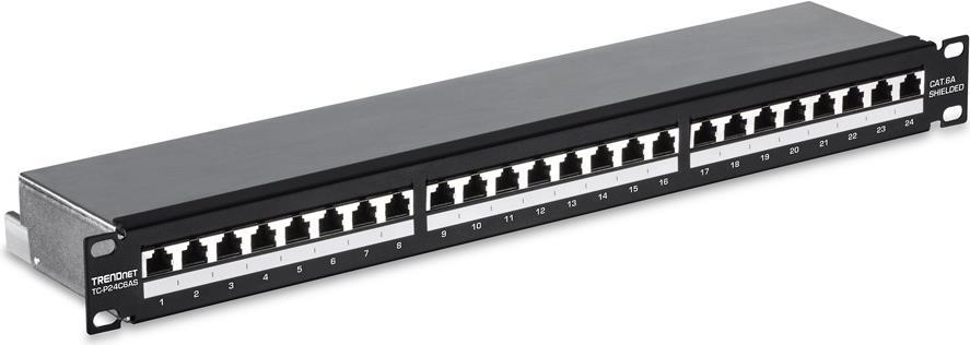 in PatchpanelsTRENDnet 24-Port Cat6A geschirmtes 1U Patch Panel1000BASE-T-10GBASE-T unterstützt, Kompatibel mit cat5e, cat6, cat6a, 110 or Krone Werkzeug, TC-P24C6AS