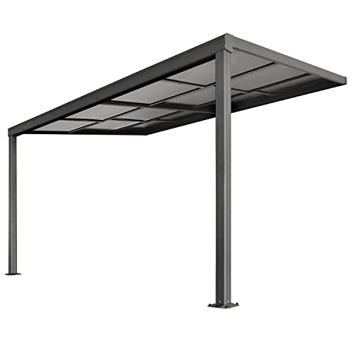 in Pavillon-ZubehörJuskys Terrassenüberdachung 4x3 m mit Schiebedach - Terrassendach aus Aluminium mit Doppelstegplatten - wetterfeste Überdachung mit UV-Schutz - Grau