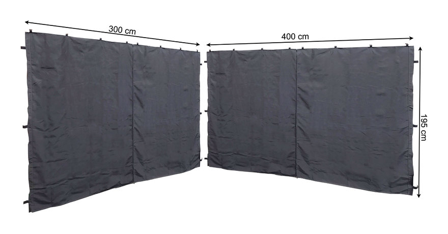 2 Seitenteile mit RV 300-400x195cm für Pavillon 3x4m Seitenwand Anthrazit RAL 7012