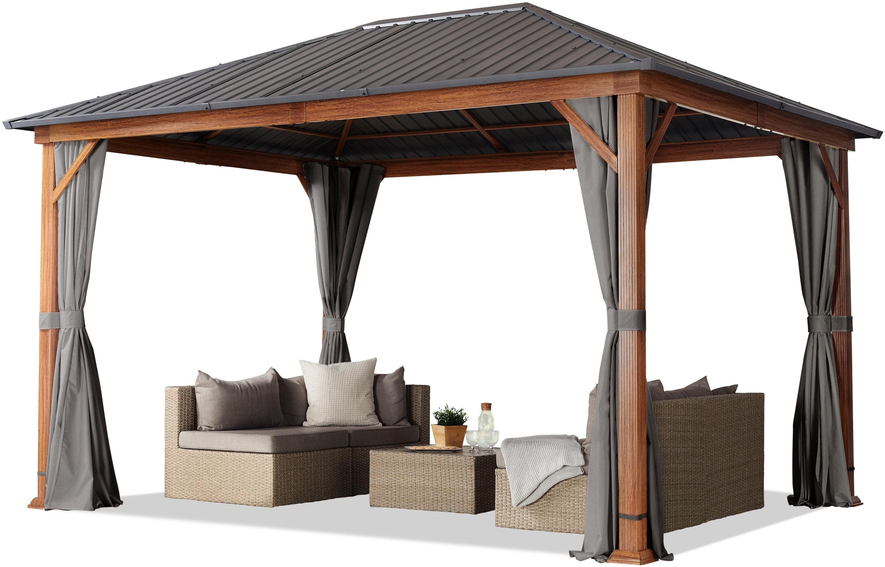 | Name | Gartenpavillon 3x4 m Holzoptik, Stahldach Hardtop 4 Seitenteile in grau |