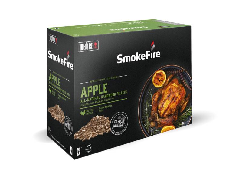 - Die SmokeFire Holzpellets aus Apfelholz sorgen für einen authentischen Holzfeuer-Geschmack beim BBQ.