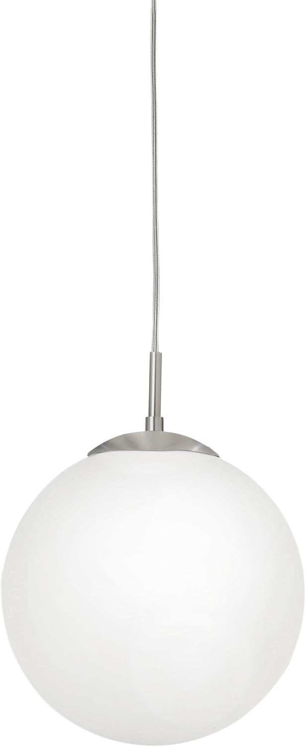 ## Eglo Pendelleuchte RONDO nickel-matt, E27 max. 1X40W Ø 30 cm, Höhe 110cm * Leuchtkugel aus hochwertigem Glas * ideal für Wohnzimmer und Esszimmer * zeitloses Design * hochwertiger Material-Mix aus Metall und Glas * in verschiedenen Ausführungen erhältlich L/B/H/Durchmesser in mm: -/-/1100/300 Gewicht in kg: 2,238 Leuchtmittel enthalten: nein Leuchtmitteltyp: E27 max. Watt Leuchtmittel: 1X40W Leuchtmittel dimmbar: JA Helligkeit in Lumen: - Farbtemperatur in Kelvin: - Schutzart: IP20 Schalter: nein Sensor: nein schaltbar: ja Zusatzinformation: -
