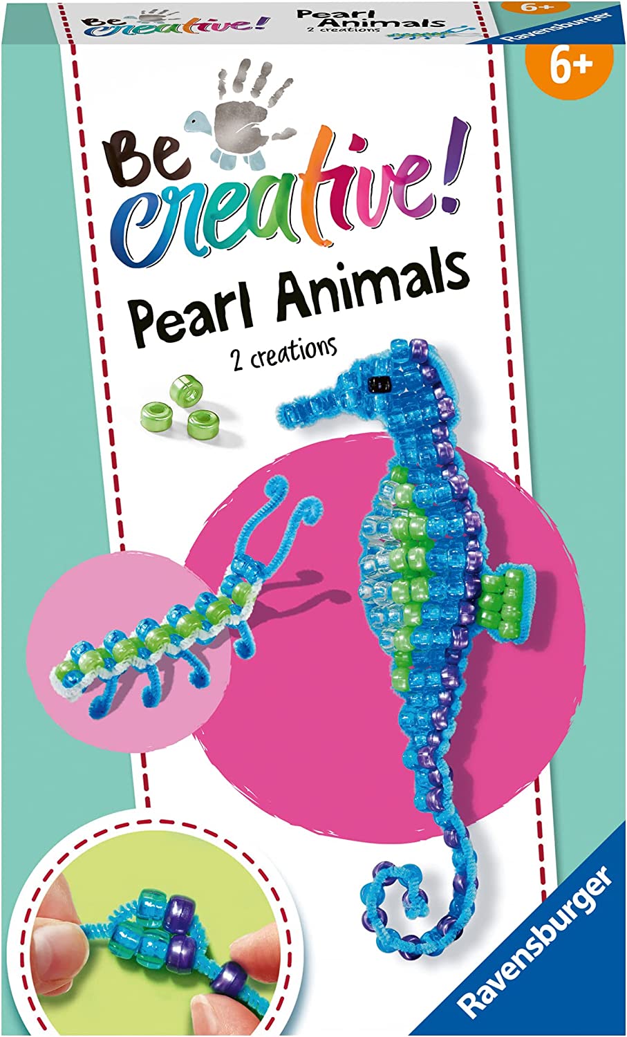 - Das Ravensburger Be Creative Set Perlentier Seepferdchen ermöglicht es Kindern ab 6 Jahren, zwei glänzende Tiere aus schillernden Perlen zu basteln.