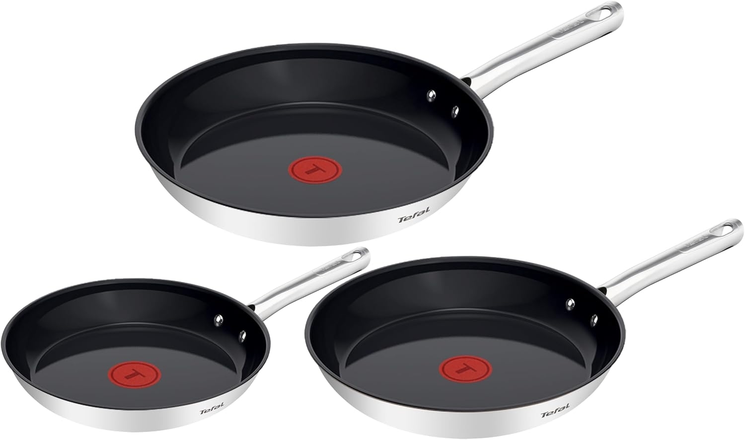 | Name | Tefal Pfannen-Set Duetto On, Edelstahl (Set, 3-tlg), Antihaftbeschichtung, Temperaturindikator Thermo-Signal, Induktion |