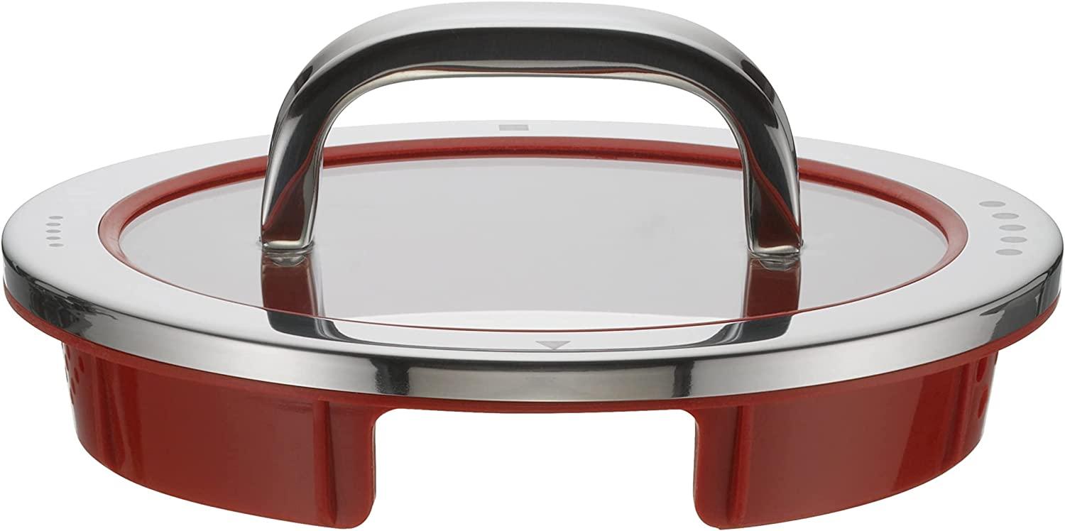 - Der WMF Glasdeckel Function 4 hat einen Durchmesser von 16 cm und einen markanten roten Silikonring.