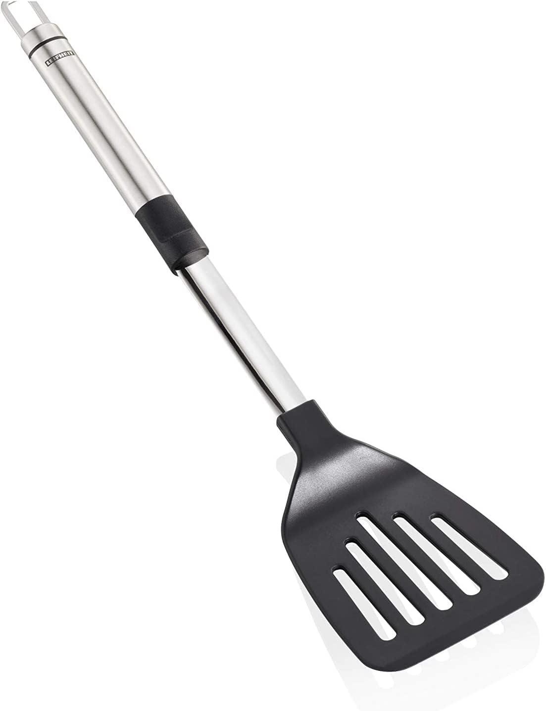 - Die LEIFHEIT Pfannenwender Nylon Proline zeichnet sich durch ein schickes und elegantes Design aus hochwertigem Edelstahl und schwarzem Kunststoff aus.
