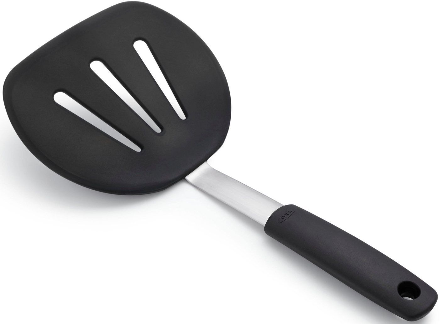 - Der OXO Good Grips Pfannenwender hat die Abmessungen 15,2 x 30 cm und besteht aus Edelstahl und Silikon