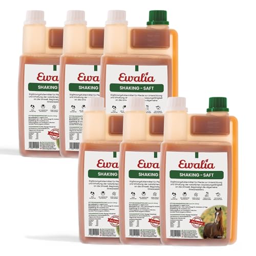 EWALIA Shakingsaft Beruhigendes Ergänzungsfuttermittel für Pferde, 100% natürliche Kräuterformel zur Unterstützung der Stressresistenz, 6x1 Liter