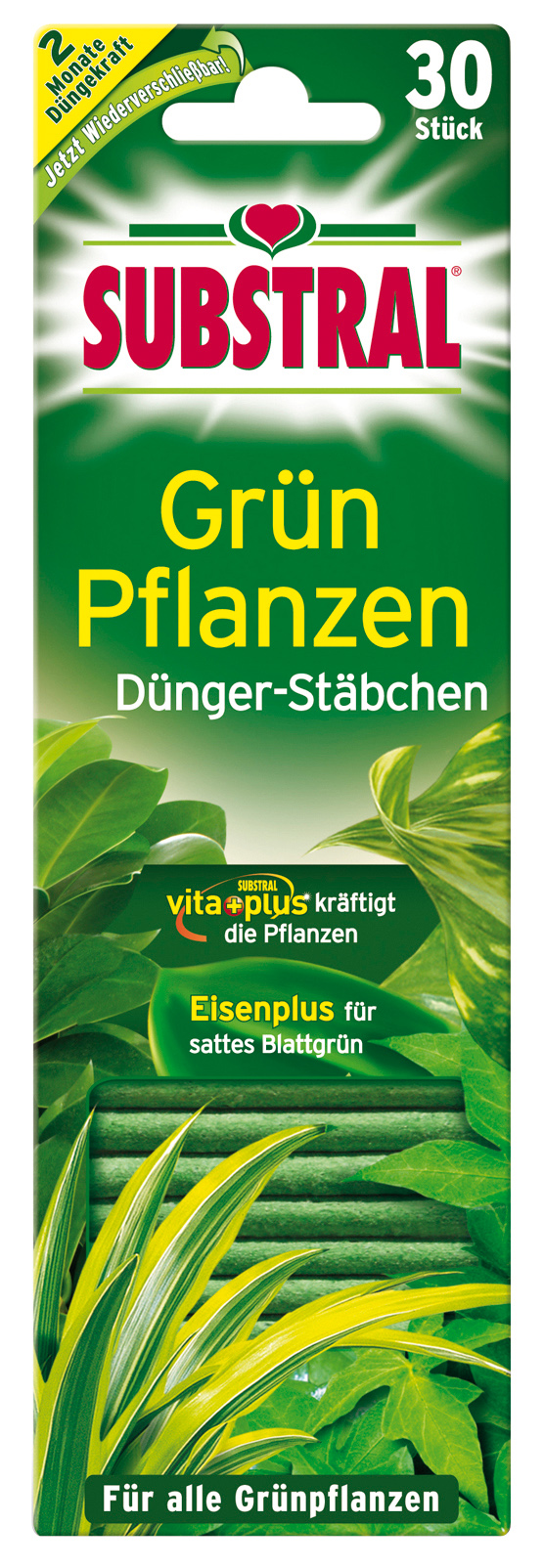 - SUBSTRAL® Dünger-Stäbchen für Grünpflanzen sorgen für eine optimale Nährstoffversorgung Ihrer Zimmerpflanzen über einen Zeitraum von zwei Monaten.