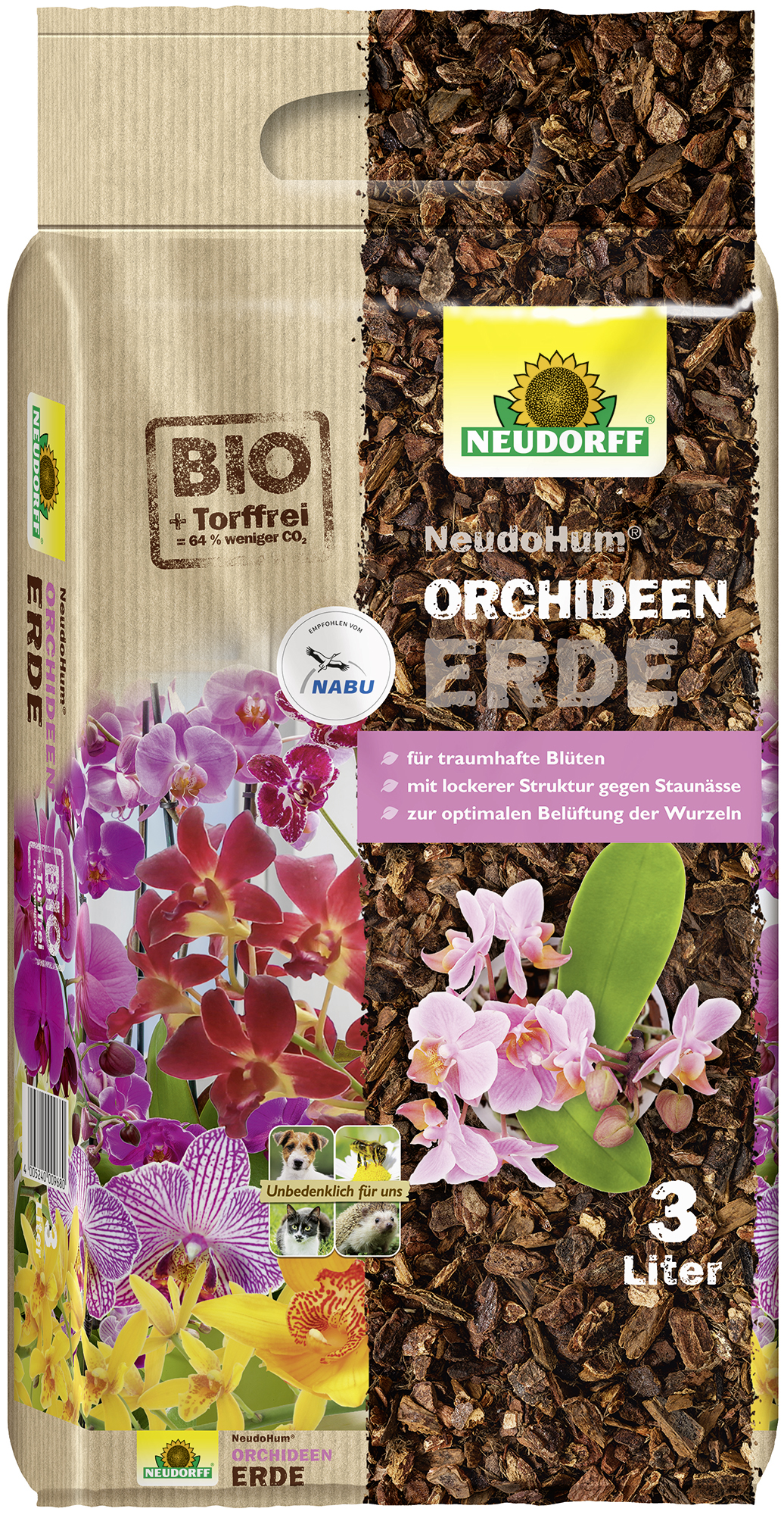 - NeudoHum OrchideenErde ist BIO und torffrei, was zu 64 % weniger CO2-Emissionen führt