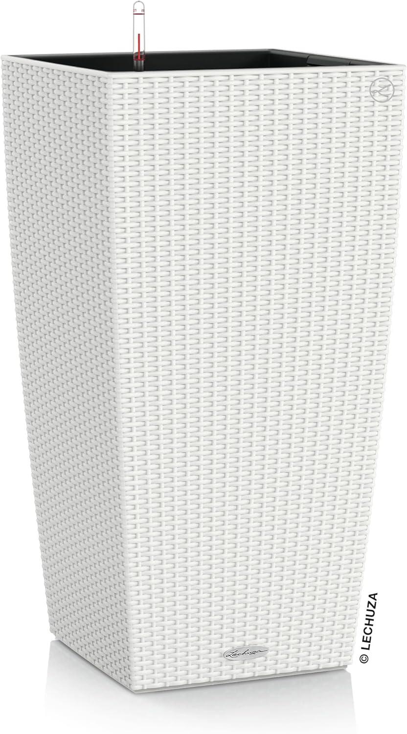 Der LECHUZA CUBICO Cottage 30 in Weiß (15226) ist ein elegantes Pflanzgefäß mit einem integrierten Bewässerungssystem, das Ihre Pflanzen optimal mit Wasser versorgt. Der praktische Wasserstandsanzeiger ermöglicht eine einfache Gießkontrolle. Hergestellt aus hochwertigem, UV- und witterungsbeständigem Kunststoff, ist dieses Pflanzgefäß sowohl für den Innen- als auch für den Außenbereich geeignet. Die täuschend echte Flechtoptik verleiht Ihrem Außenbereich einen rustikalen Charme. **Highlights** - Integriertes Bewässerungssystem für zuverlässige Wasserversorgung - Praktischer Wasserstandsanzeiger für volle Gießkontrolle - Für Innen- und Außenbereich geeignet - Hochwertiger, UV- und witterungsbeständiger Kunststoff - Täuschend echte Flechtoptik für rustikalen Landhaus-Flair **Produkteigenschaften** - Material: Kunststoff - Maße: 29,5 x 29,5 x 56,5 cm - Wasserspeicher: 4 l - Pflanzvolumen: 14 l - Pflanzeinsatz: 25 x 25 cm **Lieferumfang** - 1x Pflanzgefäß CUBICO Cottage - Integriertes Bewässerungssystem - Pflanzsubstrat LECHUZA-PON als Drainageschicht - Wechselbarer Pflanzeinsatz mit versenkbaren Griffen und Wasserstandsanzeiger