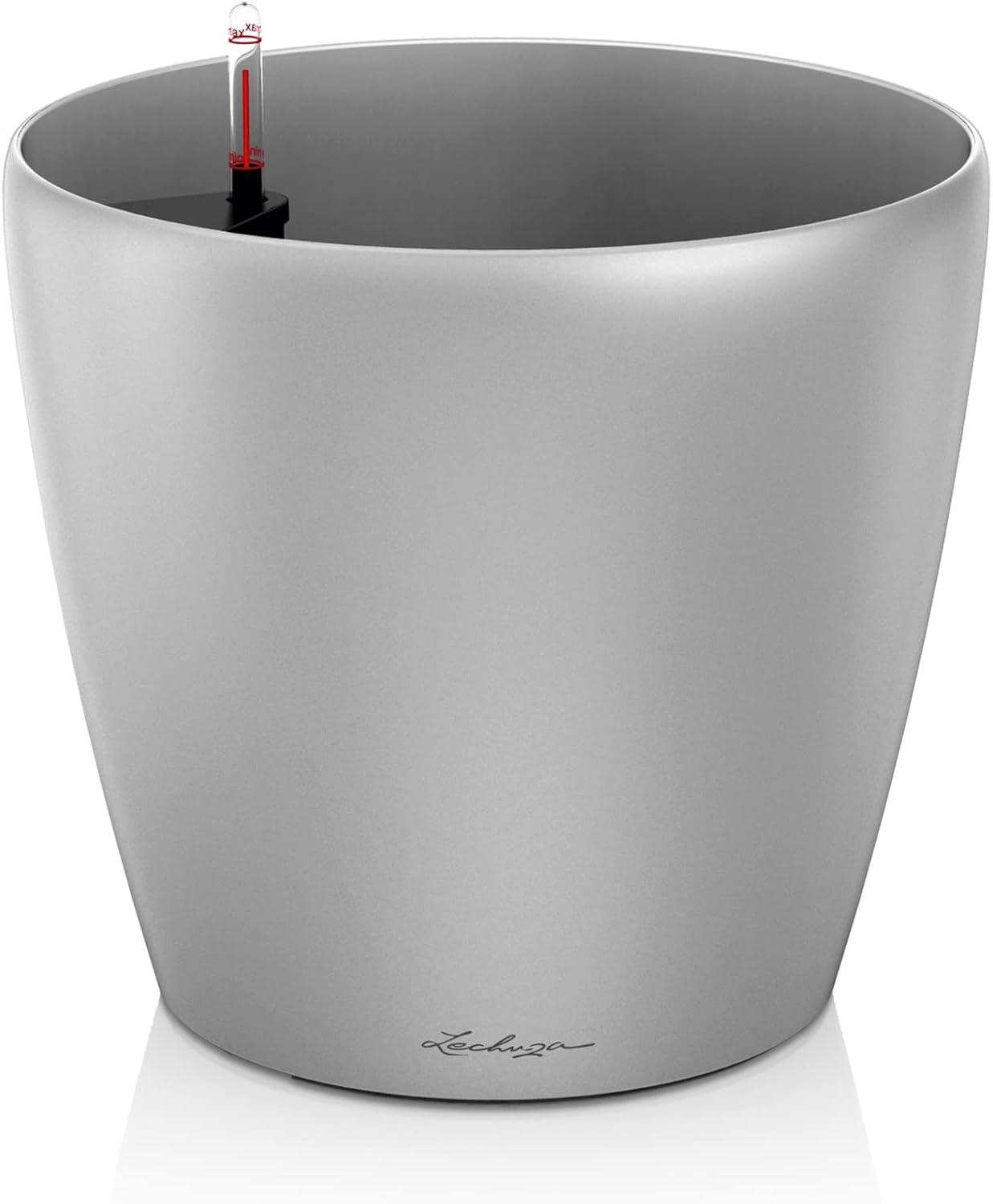 Die LECHUZA CLASSICO Premium 60 in silber metallic 14568 bietet ein elegantes Design und ein integriertes Bewässerungssystem für eine zuverlässige Wasserversorgung. Hergestellt aus hochwertigem, bruchsicherem Kunststoff, ist dieses Pflanzgefäß ideal für Zimmerpflanzen. Mit einem Pflanzvolumen von 12 l und einem Wasserstandsanzeiger haben Sie die Gießkontrolle stets im Blick. MADE IN GERMANY. **Highlights** - Integriertes Bewässerungssystem für zuverlässige Wasserversorgung - Hochglanzoberfläche für Eleganz und Exklusivität - Wasserstandsanzeiger für volle Gießkontrolle - Hochwertiger, langlebiger Kunststoff aus Deutschland - All-in-One Set mit Pflanzgefäß und Pflanzsubstrat **Produkteigenschaften** - Premium Design in silber metallic - Maße: 29,5 x 29,5 x 30 cm - Pflanzvolumen: 12 l - Wasserstandsanzeiger für optimale Bewässerungskontrolle - Hochglanzoberfläche für stilvolles Ambiente **Lieferumfang** - 1x Pflanzgefäß LECHUZA CLASSICO - Bewässerungssystem - Pflanzsubstrat LECHUZA-PON
