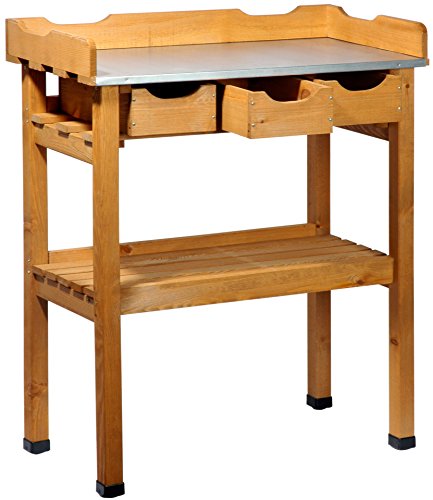 dobar 29030e Praktischer Pflanztisch mit 3 Schubladen und 2 Ablageflächen aus imprägniertem Kiefernholz80 x 40 x 90 cm