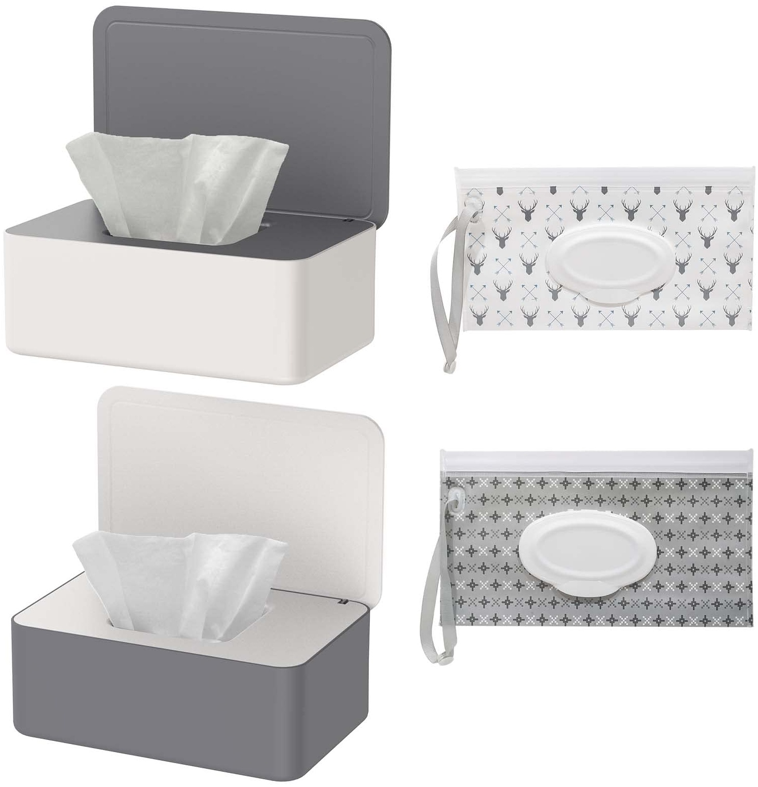 | Name | 2 Stück Feuchttücher Box und 2 Stück Feuchttücher Tasche Set, Baby Feuchttücherbox, Feuchte Toilettenpapier Box, Taschentuch Aufbewahrungsbox, Feuchttücher Spender, Serviettenbox Mit Deckel |