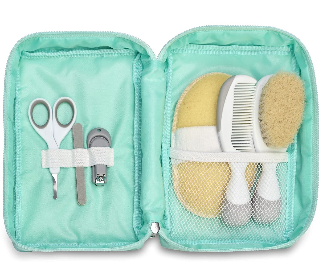 | Name | Chicco - Reise-Hygiene-Set für Kinder, 6 Stück, Bürste und Kamm, Schwamm-Handschuh, Schere mit abgerundeten Spitzen, Nagelknipser und USA-Nagelfeilen. |