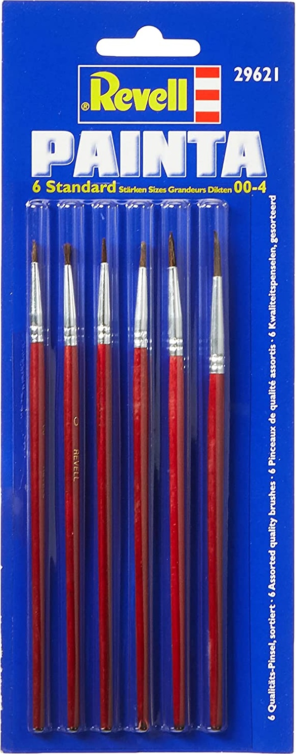 - Die Revell Painta Standard Pinsel sind in einer praktischen Blisterverpackung mit 6 verschiedenen Größen von 00 bis 4 erhältlich.