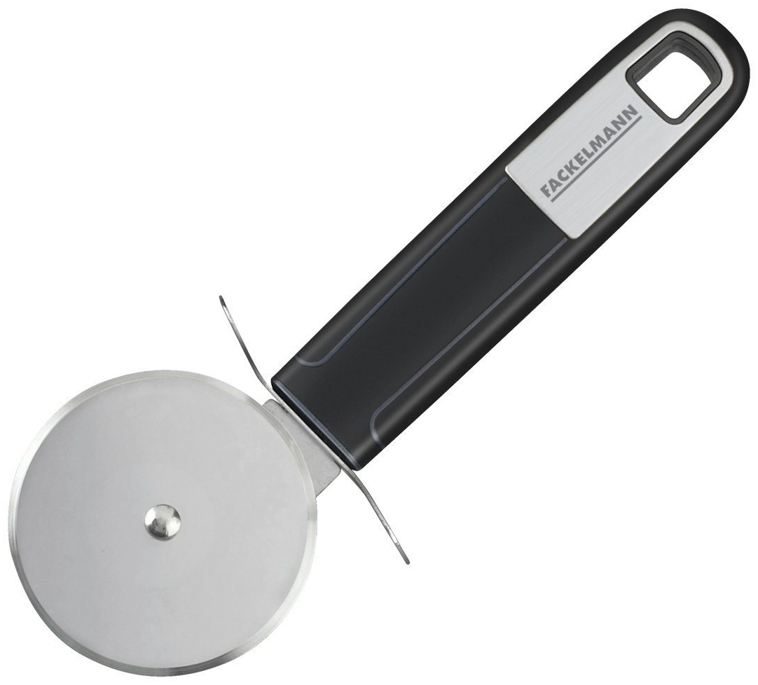 Hochwertiger Pizzaschneider von FACKELMANN mit modernem Design. Der langlebige und rutschfeste Soft Touch-Griff sorgt für einen sicheren Halt und ermöglicht müheloses Schneiden und Teilen von Teigen aller Art. Der Funktionsteil besteht aus rostfreiem Edelstahl und der Griff aus Kunststoff mit Edelstahlkappe. Der Pizzaschneider ist zudem spülmaschinengeeignet. **Highlights** - Hochwertiges Design für eine ansprechende Optik - Rutschfester Soft Touch-Griff für sicheren Halt - Müheloses Schneiden und Teilen von Teigen - Funktionsteil aus rostfreiem Edelstahl für Langlebigkeit - Spülmaschinengeeignet für einfache Reinigung **Produkteigenschaften** - Maße: ca. 17,5 x 2,5 x 6,5 cm - Material: Funktionsteil aus rostfreiem Edelstahl, Griff aus Kunststoff mit Edelstahlkappe **Lieferumfang** - 1 x Pizzaschneider - Ausschluss von weiteren Zubehörteilen