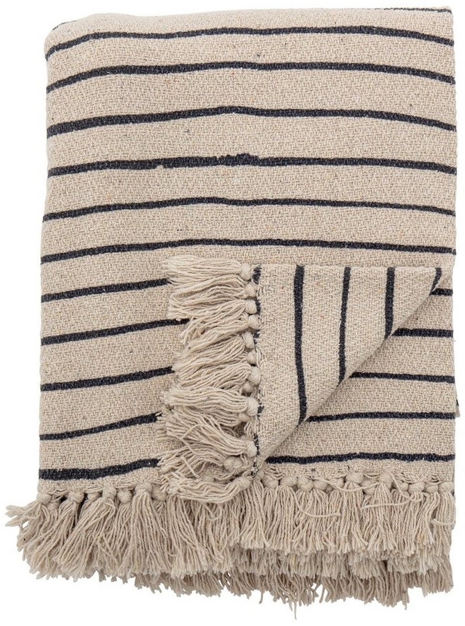 - Die Bloomingville Eia Decke besteht aus recycelter Baumwolle, was sie umweltfreundlich macht
