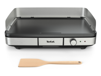 in PlanchasTefal Maxi Plancha Elektro-Tischgrill CB690DExtra groß, Antihaftbeschichtete Teppanyaki Platte, Leichte Reinigung, Innen und außen nutzbar, Inkl. abnehmbarem Windschutz Holzspatel, 2300W, klein