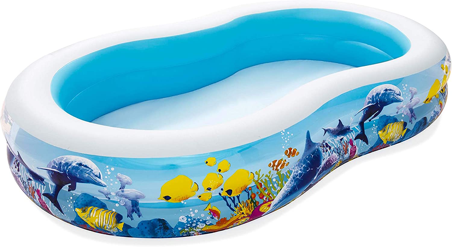 - Der Bestway Family Pool Sea Ground hat eine stabile Konstruktion mit zwei gleich großen, aufblasbaren Ringen.