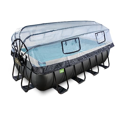 in PlanschbeckenEXIT Toys Black Leather Pool mit Abdeckung - 400x200x100cm - GroßerRechteckiger Rahmenpool mit Sandfilterpumpe und Poolleiter - Extra Tief - Für Sauberes und Warmes Poolwasser - Schwarz