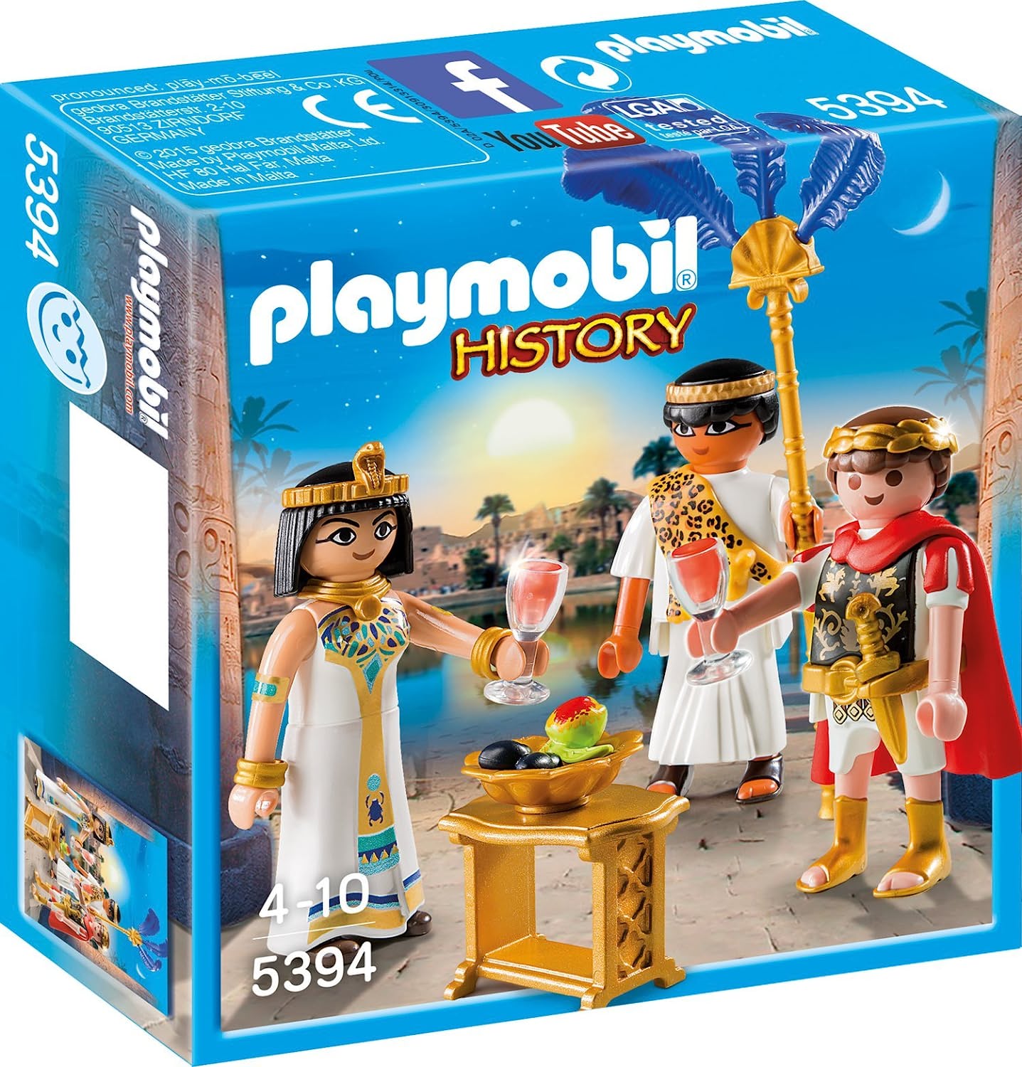 Figuren: 1 Cäsar, 1 Kleopatra, 1 Mann | Tiere: keine | Zubehör: 2 Sektgläser mit Füllung, 1 Apfel, 1 Schale, 1 Dolch, 1 Federfächer, 1 Tisch, 1 Set Pflaumen