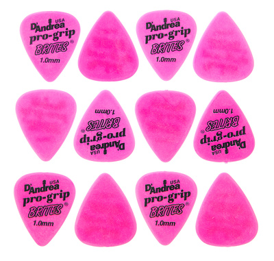 - Die dAndrea Pro-Grip Brites Picks haben eine Stärke von 1,00 mm und sind aus hochwertigem Delrin gefertigt