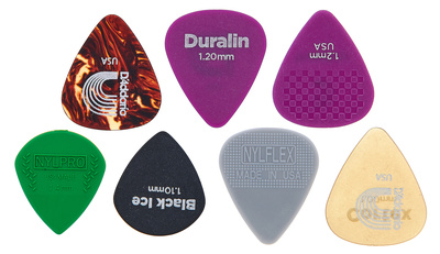 in PlektrenDaddario 1XVP6-5 Heavy Gauge PackPlektren Set mit 1,00mm Celluloid, 1,00mm Nylflex, 1,40mm Nylpro, 1,00mm Cortex, 1,20mm Duralin, 1,10mm Black Ice und 1,20mm Duragrip
