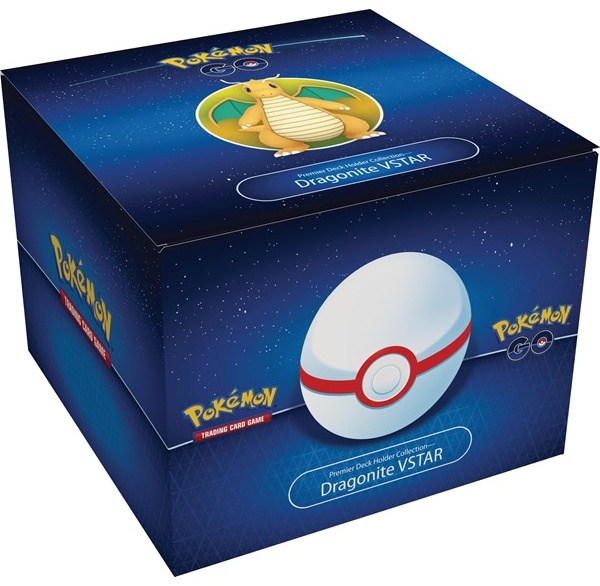 | Beschreibung | An epic Raid Battle brings mighty rewards: a powerful Dragonite VSTAR for your collection and a Premier Ball holder for your favorite deck! With a VSTAR Power that shares loads of Energy with your Pokémon, Dragonite VSTAR soars to strategic heights, and you’ll receive it along with Dragonite V in this special collection featuring the Pokémon TCG: Pokémon GO expansion. To top it off, the sturdy Premier Ball case holds a fully sleeved deck of cards for an ultimate statement of Pokémon Trainer style! The Pokémon TCG: Pokémon GO Premier Deck Holder Collection contains: • 1 etched foil promo card featuring Dragonite VSTAR • 1 foil promo card featuring Dragonite V • 1 deck holder shaped like a Premier Ball • 9 Pokémon GO booster packs • A code card for Pokémon TCG Live |