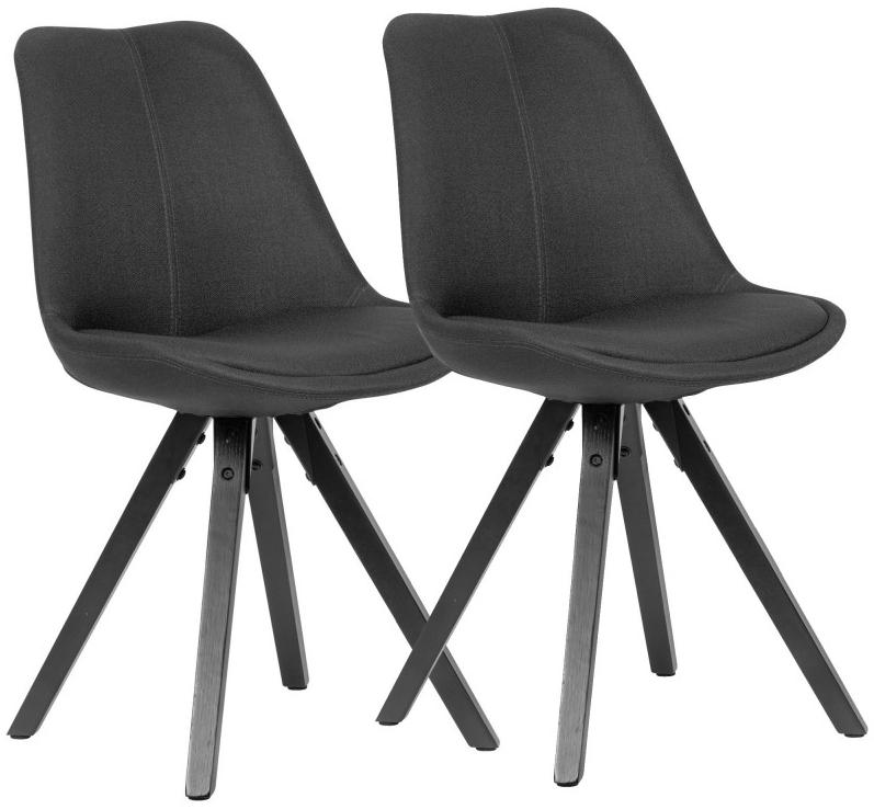 Ausführung Bezug: Stoff in der Farbe anthrazit aus 100% Polyester Beine: Hevea Holz (Indien) in schwarz lackiert Beinhalterung: Pulverbeschichtetes Eisen in schwarz Lieferumfang 2 Stühle