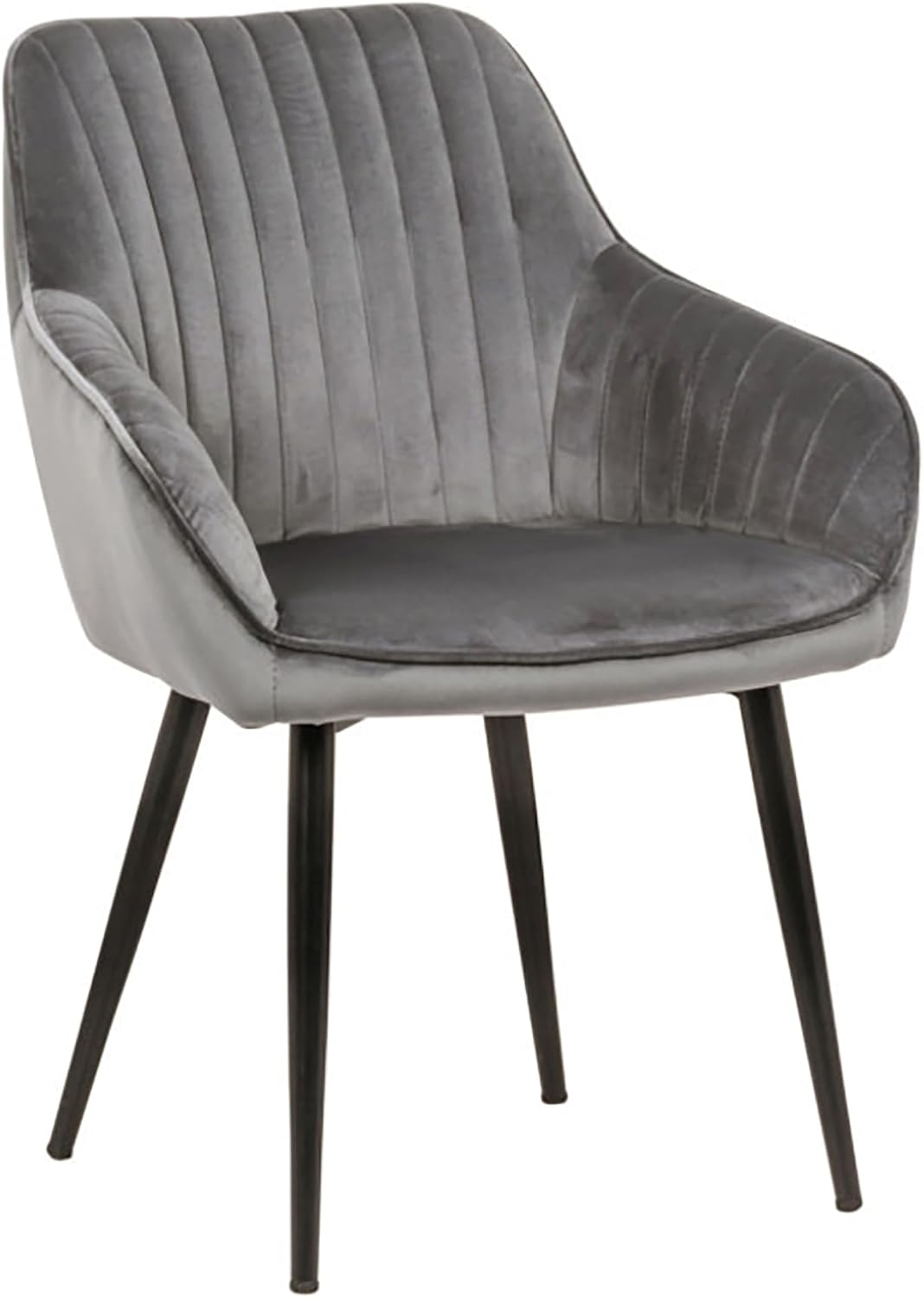 Der Riess Ambiente Edler Design Stuhl Turin in silbergrau ist die perfekte Wahl für Ihr Esszimmer oder Konferenzraum. Mit bequemen Armlehnen und einem hochwertigen Microfaserbezug vereint er Eleganz und Komfort. Die schwarzen Metallbeine setzen einen stilvollen Kontrast und verleihen dem Stuhl eine moderne Note. Mit den Abmessungen von 60 x 84 x 61 cm (B x H x T) und einer Sitzfläche von 43 x 49 x 39 cm (B x H x T) bietet er optimalen Sitzkomfort. **Highlights** - Elegant und komfortabel: Der Stuhl verfügt über bequeme Armlehnen und eine hochwertige Polsterung. - Langlebiger Bezug: Der Stuhl ist mit einem strapazierfähigen und pflegeleichten Microfaserbezug ausgestattet. - Stilvoller Kontrast: Die schwarzen Metallbeine bilden einen tollen Kontrast zum silbergrauen Bezug. **Produkteigenschaften** - Abmessungen: 60 x 84 x 61 cm (B x H x T) - Sitzfläche: 43 x 49 x 39 cm (B x H x T) - Höhe Rückenlehne: 42 cm - Höhe Armlehne: 19 cm - Abstand zwischen Boden und Armlehne: 64 cm - Bezug: Samt (100% Polyester) - Beine: Metall