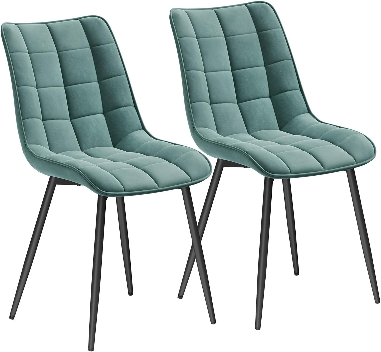 | Beschreibung | 2er-Set Küchenstuhl mit Rückenlehne aus Samt und Metallbeine Elif in türkis. Diese modernen Esszimmerstühle aus Samt bieten nicht nur ein angenehmes Sitzgefühl, sondern passen auch perfekt in jeden Raum. Die Stühle sind stabil, leicht zu pflegen und haben ergonomisch abgerundete Ecken. **Highlights** - Dick gepolsterte Sitzfläche aus Samt für hohen Komfort - Gestell aus Metall für lange Lebensdauer - Bodenschoner zum Schutz vor Kratzern - Ergonomisch abgerundete Ecken und Kanten - Stabile und hochwertige Verarbeitung **Produkteigenschaften** - **Material:** Metallgestell, Samtsitzfläche - **Gesamthöhe:** ca. 85,5 cm - **Sitzhöhe:** ca. 46,5 cm - **Sitzfläche:** ca. 46x40 cm (B x T) - **Höhe der Rücklehne:** ca. 38,5 cm - **Belastbarkeit:** ca. 100 kg - **Farben:** Blau, Bordeaux, Rosa, Dunkelgrau, Hellgrau, Schwarz, Dunkelgrün, Braun, Türkis **Lieferumfang** - 2 x Esszimmerstühle - 1 x Aufbauanleitung |