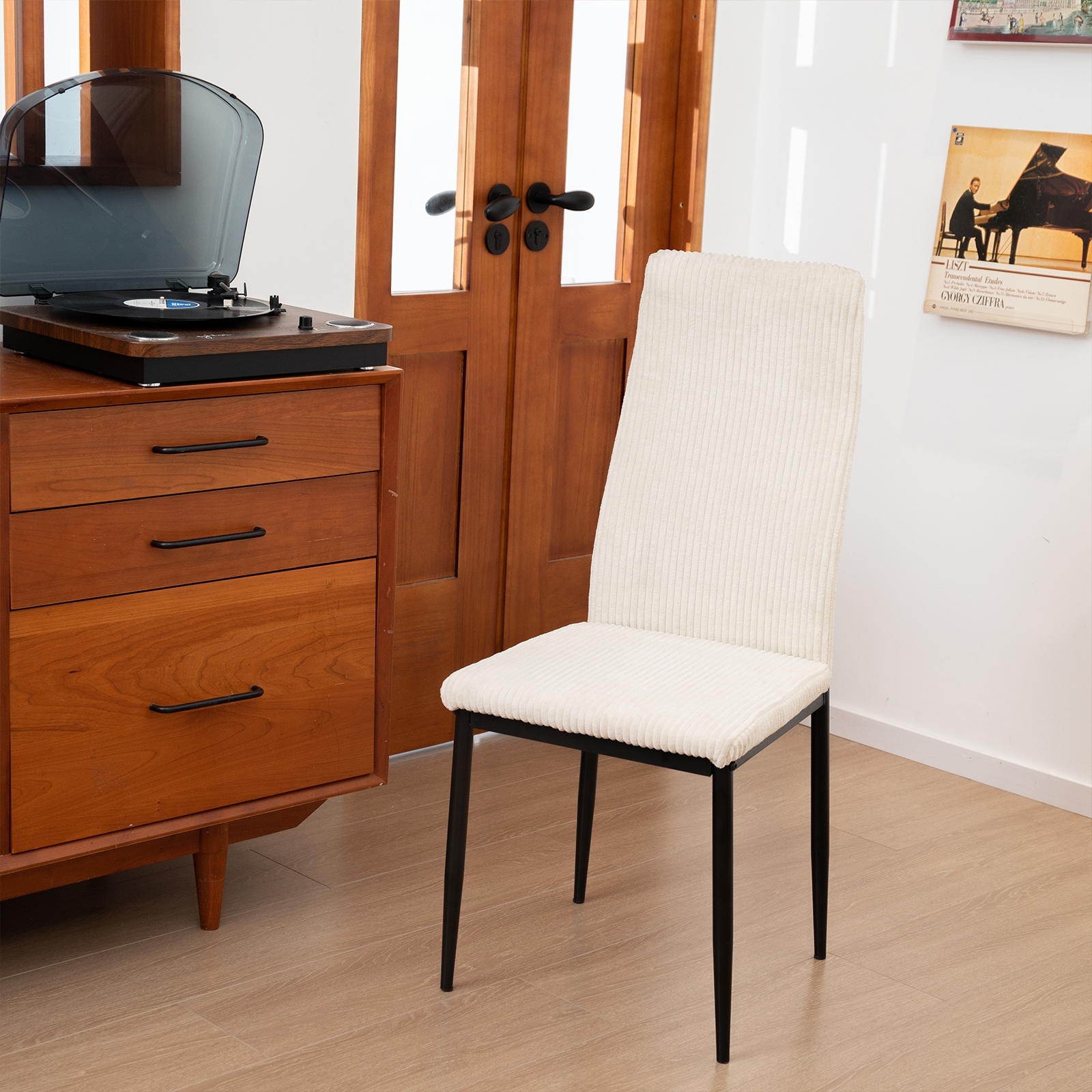 | Name | Stuhl Cord Beige mit Metallgestell, hohe Rückenlehne, gepolstert, belastbar 120 kg,40*39*94 cm |