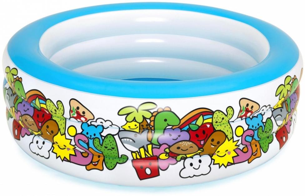 Aufblasbarer Pool für Kinder ab 6 Jahren mit einem bunten Charakterdesign. Der Bestway Pool bietet mit seinen drei Ringen eine sichere und spaßige Möglichkeit, sich an heißen Tagen abzukühlen. Hergestellt aus langlebigem Vinylmaterial mit einer Wandstärke von 0,19 mm, garantiert er Stabilität und Sicherheit. Mit einer Kapazität von 400 l und einem praktischen Ablassventil ist der Pool ideal für den Garten oder die Terrasse. **Highlights** - Sicherheitsventile für zusätzlichen Schutz - Langlebiges, zuvor getestetes Vinylmaterial - Drei gleiche Ringe für mehr Stabilität - Reparaturflicken im Lieferumfang enthalten - Wasserkapazität von 400 l **Produkteigenschaften** - Abmessungen: 152 x 51 cm - Wandstärke: 0,19 mm - Gewicht: 2,5 kg - Material: Vinyl - Farbe: Mehrfarben **Lieferumfang** - 1 Planschbecken - 1 Reparaturflicken