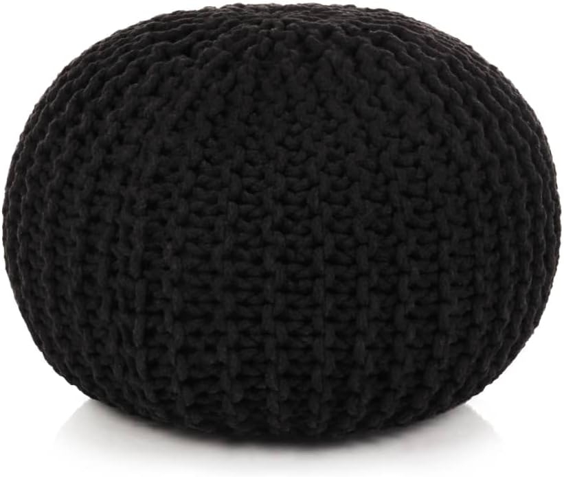 Unser handgestrickter Pouf aus 100% Baumwolle in der Farbe Schwarz ist eine stilvolle und praktische Ergänzung für Ihr Zuhause. Mit einem Durchmesser von 50 cm und einer Höhe von 35 cm bietet er Ihnen die Möglichkeit, bequem darauf zu sitzen oder die Füße abzulegen. Die Füllung mit EPS-Perlen sorgt für optimalen Komfort. Dieser handgefertigte Pouf schafft eine gemütliche Atmosphäre in jedem Raum und wird zum Blickfang Ihrer Einrichtung. **Highlights** - Handgestrickter Pouf aus 100% Baumwolle - Mit EPS-Perlen gefüllt für optimalen Komfort - Praktische und dekorative Ergänzung für Ihre Wohnungseinrichtung - Gemütliches und wohnliches Ambiente in jedem Zimmer - Größe: 50 x 35 cm (Durchmesser x Höhe) **Produkteigenschaften** - Material: 100% Baumwolle und EPS-Perlen (Füllung) - Handgefertigt - Farbe: Schwarz - Abmessungen: 50 x 35 cm (Durchmesser x Höhe)