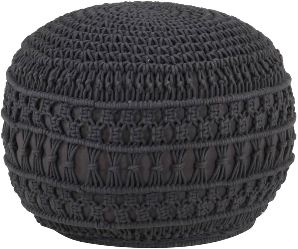 Ein zeitgemäßer und schicker Makramee Sitzpuff in Anthrazit, handgefertigt aus 80% Baumwolle und 20% Polyester. Mit einer Größe von 45 x 30 cm eignet er sich ideal zum Sitzen oder als Fußablage. Die Füllung aus EPS-Perlen sorgt für optimalen Komfort und schafft eine gemütliche Atmosphäre in Ihrem Zuhause. **Highlights** - Handgefertigt aus geflochtenen Baumwollfasern: Einzigartiges Design und hochwertige Verarbeitung. - Optimaler Komfort dank EPS-Perlen-Füllung: Bequemes Sitzen oder Entspannen. - Vielseitig einsetzbar: Als Sitzgelegenheit oder Fußablage nutzbar. - Zeitgemäßes und schickes Design: Passt perfekt in moderne Wohnräume. - Maße: 45 x 30 cm (Durchmesser x Höhe): Ideal für verschiedene Einsatzzwecke. **Produkteigenschaften** - Farbe: Anthrazit - Material: Stoff (80% Baumwolle, 20% Polyester) mit EPS-Perlen-Füllung - Abmessungen: 45 x 30 cm (Durchmesser x Höhe) - Handgefertigt aus geflochtenen Baumwollfasern - EAN/GTIN: 8720286181072 - Artikelnummer: V324006