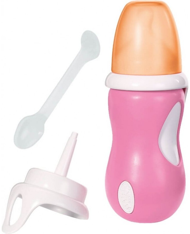 - Durch das Loch am Löffelansatz wird der BABY born Brei aus der Flasche auf den Löffel gedrückt.